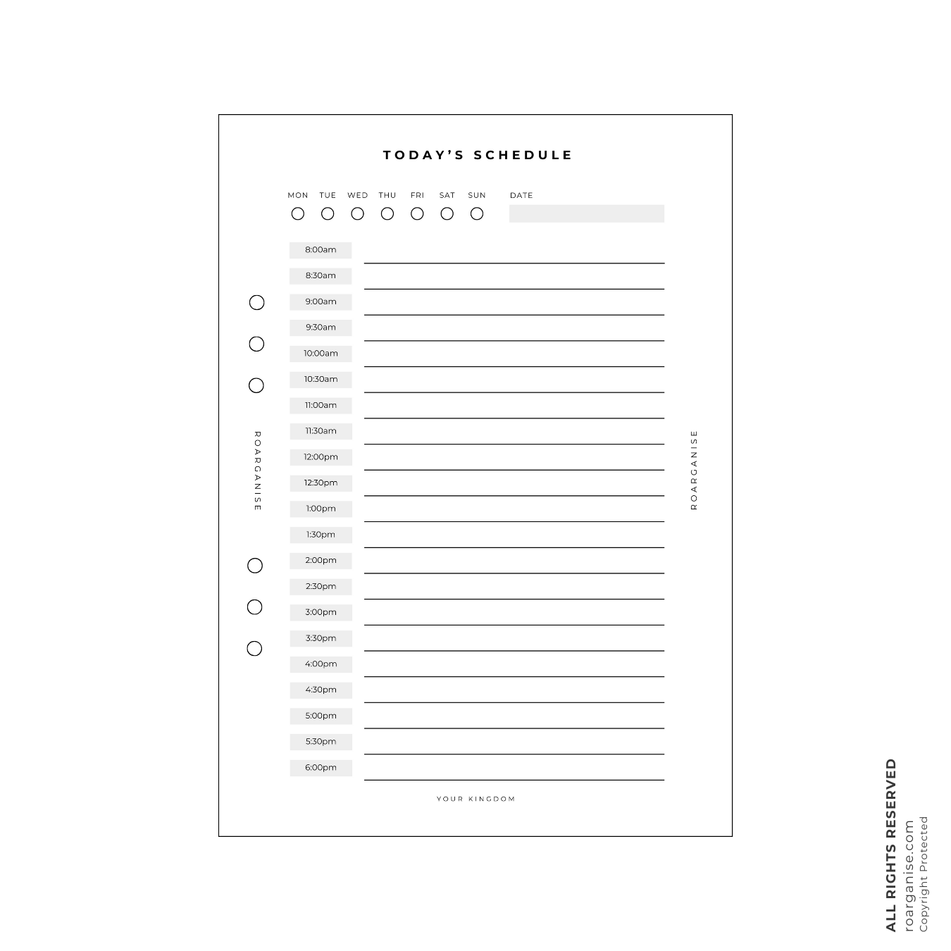 Transform your Roarganise binder into your ultimate daily command centre! Our Today's Schedule Inserts are designed for detailed time management, helping you block out every hour and stay on top of your busiest days—perfect for professionals, students, or neurodivergent minds who thrive on structured daily planning.