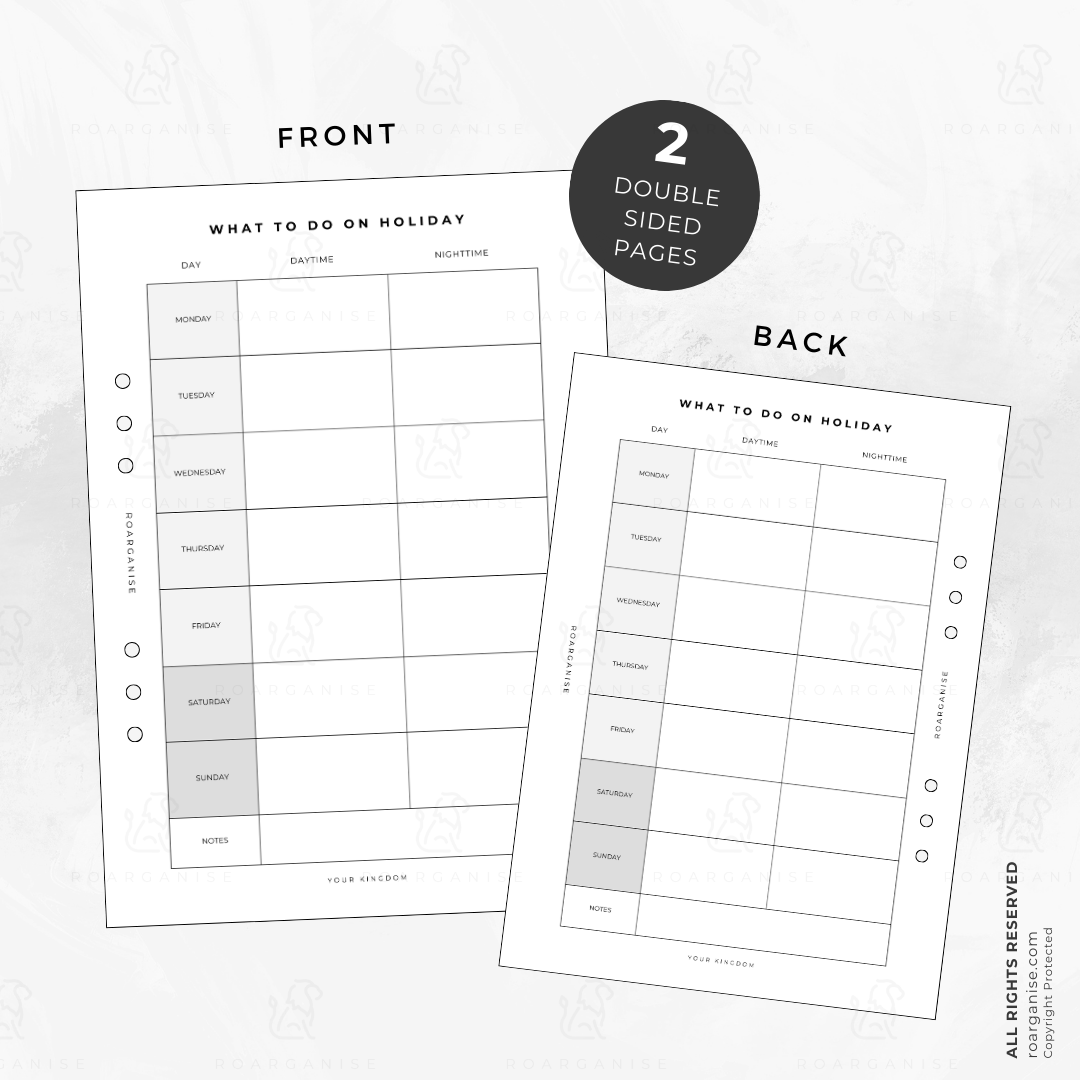 Make every day of your holiday count! Our Holiday Planner Inserts are designed to help you organise your trips, make the most of every moment, and enjoy stress-free adventures—whether you’re travelling solo, as a family, or with friends.